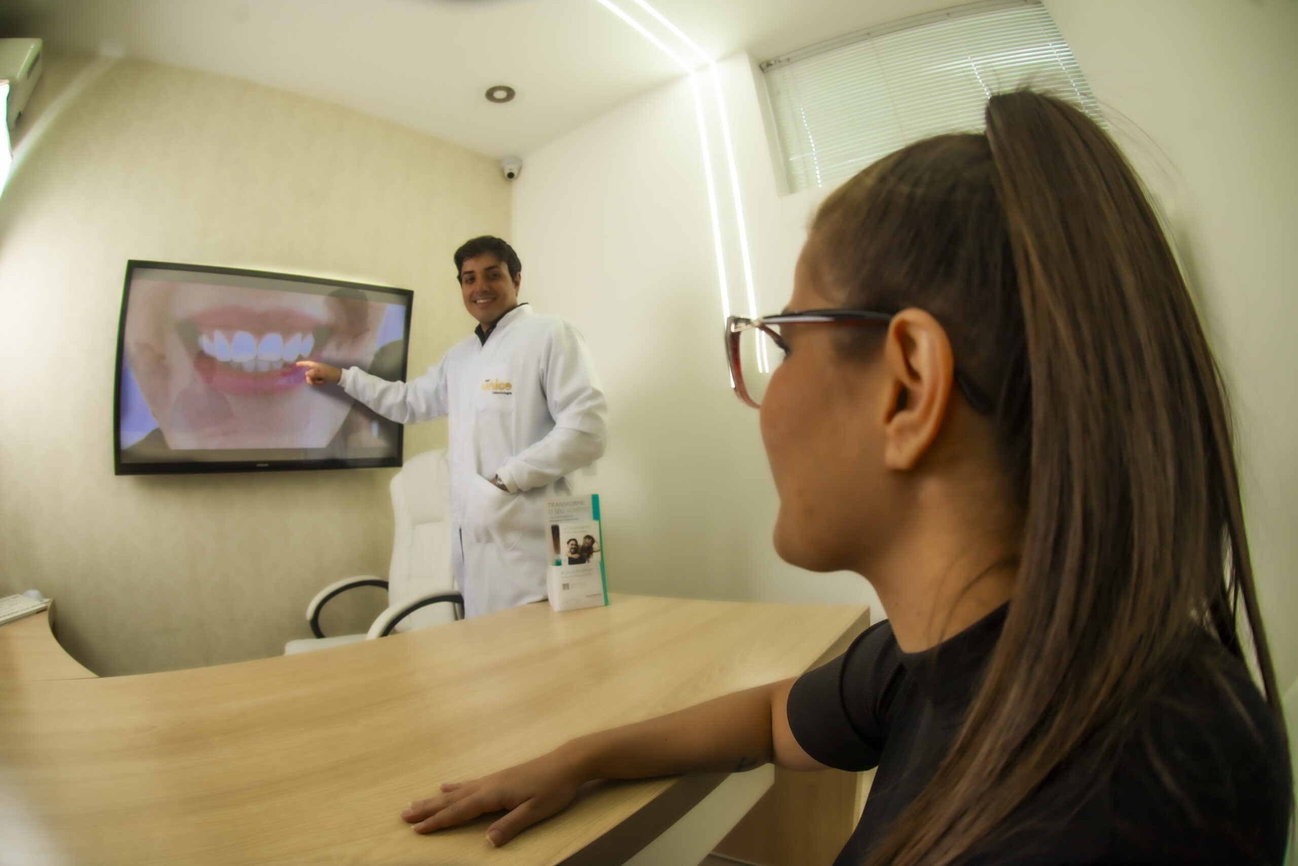Nosso especialista em diagnóstico avalia minuciosamente todas as necessidades e possibilidades de melhorias com o auxílio de uma câmera intraoral, que aumenta a imagem em até 60x, permitindo antecipar diagnósticos não passíveis de detectar em exames clínicos convencionais